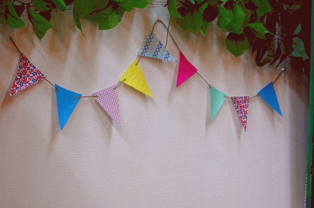 先日の交流会で使われたガーランド。一からA4コピー用紙にマスキングテープをぺたぺたしたお手製です。