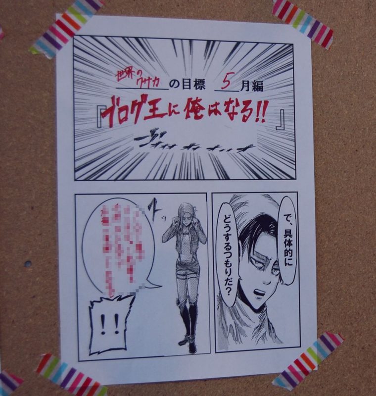 スタッフ全員何せ進撃の巨人が大好きなので、少しでも頑張れるような目標シートをと思いつくりました。