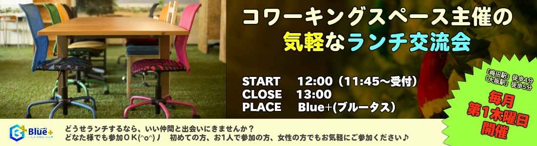 Blue+(ブルータス)では、【毎月第一木曜日】にランチ交流会を定期開催しています♪