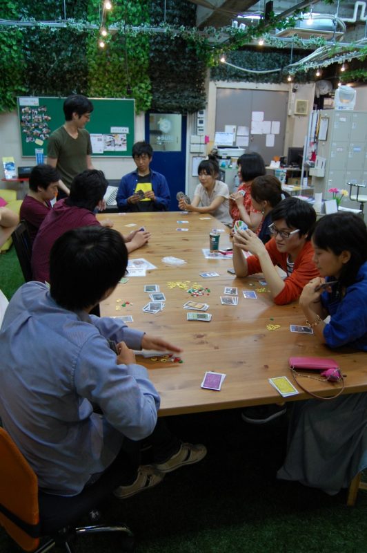 これは2人で対戦するゲームでしたが、別のテーブルでは4人ずつにわかれて別のゲームが行われてました。