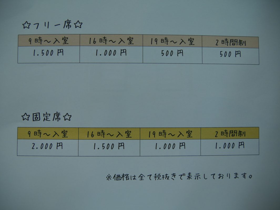 ☆固定席プラン☆ 始めました!