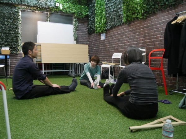 立ったまま、座りながらとさまざまなストレッチを行いました♪
