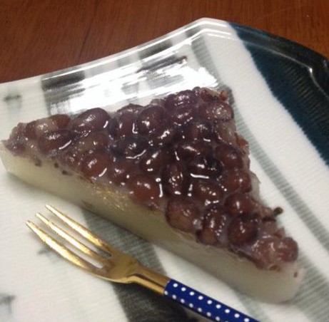 ういろうの上にあずきが乗った三角形の和菓子で