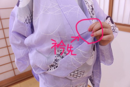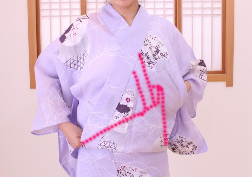 上前は胸を覆うように深く合わせ、衿合わせは深めにするのがキレイに着るコツです。