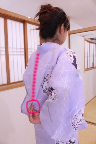 浴衣の場合、衣紋を抜きすぎると少し品が悪く見えてしまうので、品よくうなじが見える程度に抜きましょう。こぶし1個分程度が目安です。