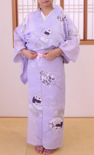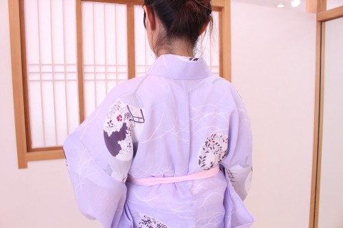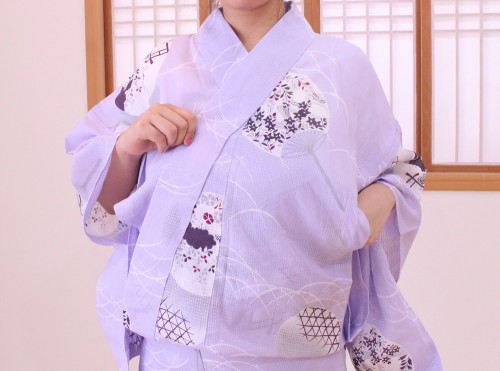 ゆかた下(ない場合はキャミソールとペチコートなどでも代用可)を着たら、ゆかたを肩から羽織ります。