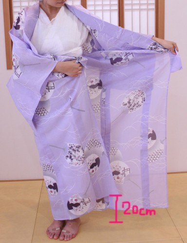 【1】浴衣を肩からはおり、両袖を引き、左右のバランスを決める。