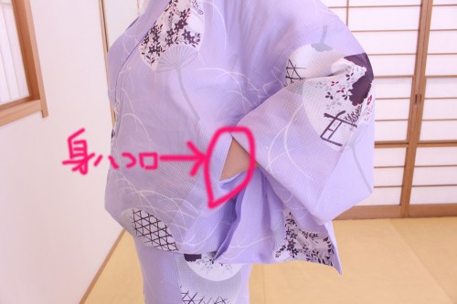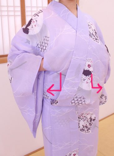 後ろ同様に、左右の身八つ口から手を入れて、左右に動かします。