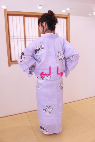 腰紐を結ぶとしわがよるので、脇に流しましょう。