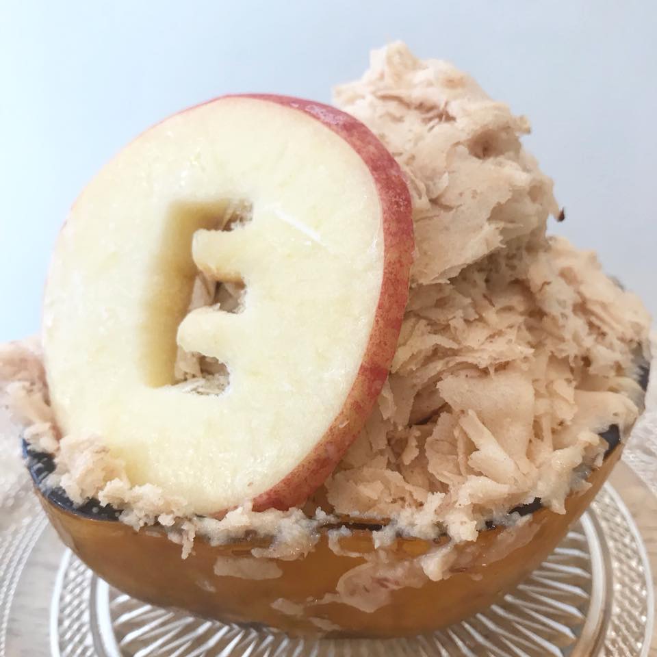 なんとりんごの果汁のみを使ったかき氷で、1つでりんご3個使っているそうです?