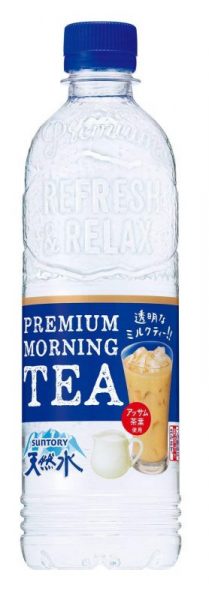 左《サントリー天然水プレミアムモーニングティーミルク》