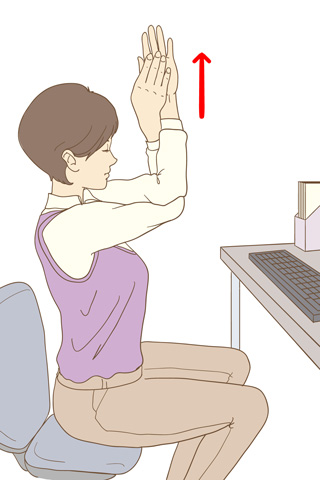 息を吸う時に手を上下にひっぱりあい、吐く時にそのままの位置で力をゆるめます!