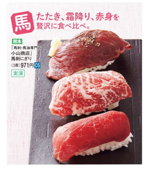 熊本名物の馬刺にぎり**