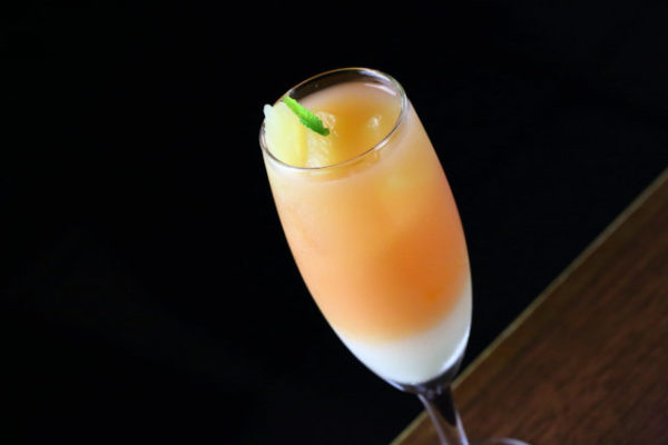 ピンクグレープフルーツとカルピスの層と、パイナップルのトッピングが嬉しい一杯。