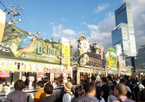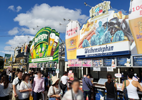 移動遊園地などもある広大な会場には世界中から600万人以上の人が来場し、訪れた人たちは1ℓジョッキを片手に