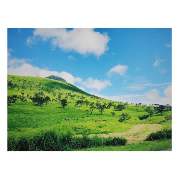 熊本阿蘇といえば阿蘇山ですが、その周りの山の形だったり自然がとても日本のものとは言えないものでした。