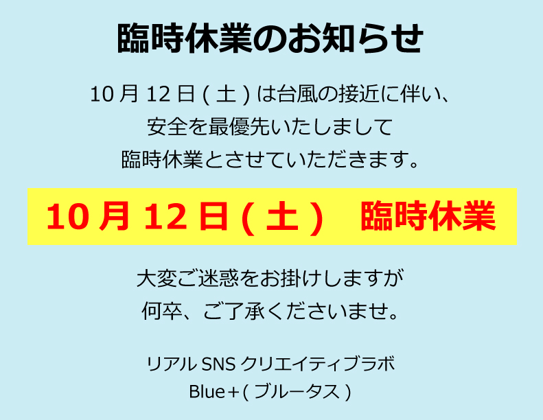 10月12日(土) 臨時休業