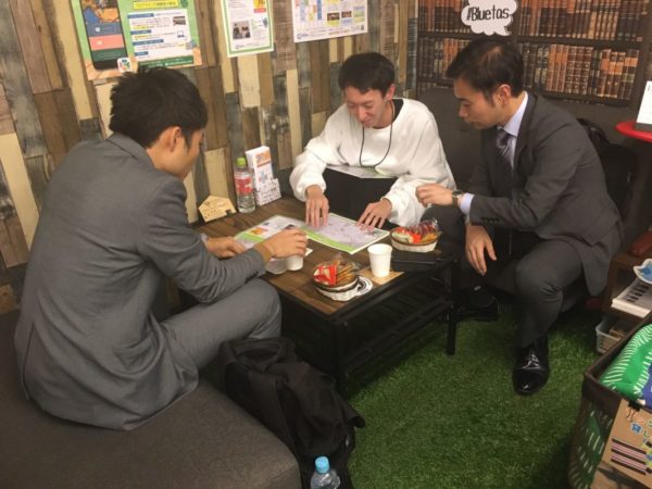お2人ともお酒が好きとのことで、途中からBlue+周辺の「おいしいお酒が飲めるお店」の紹介と