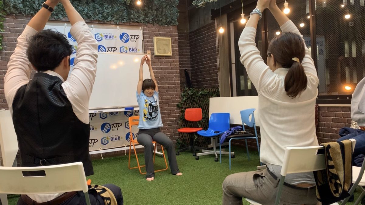 今回、講師の楮原さんと3人の方が、ストレッチに取り組んでいただきました。