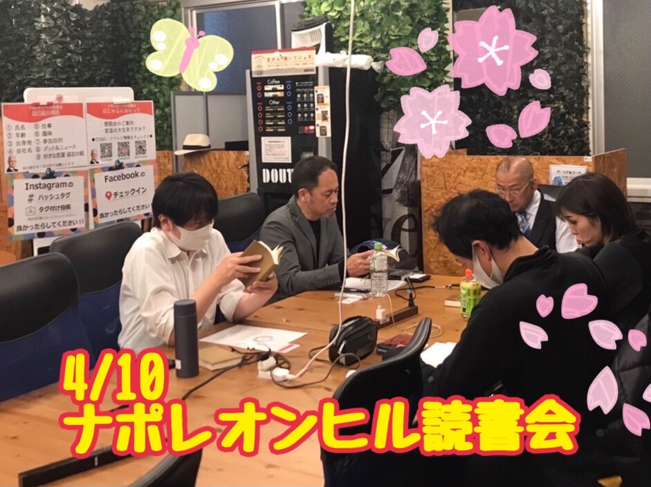 さて、先日4月10日(月)に毎月恒例のイベント「ナポレオン・ヒル読書会」を開催しました!