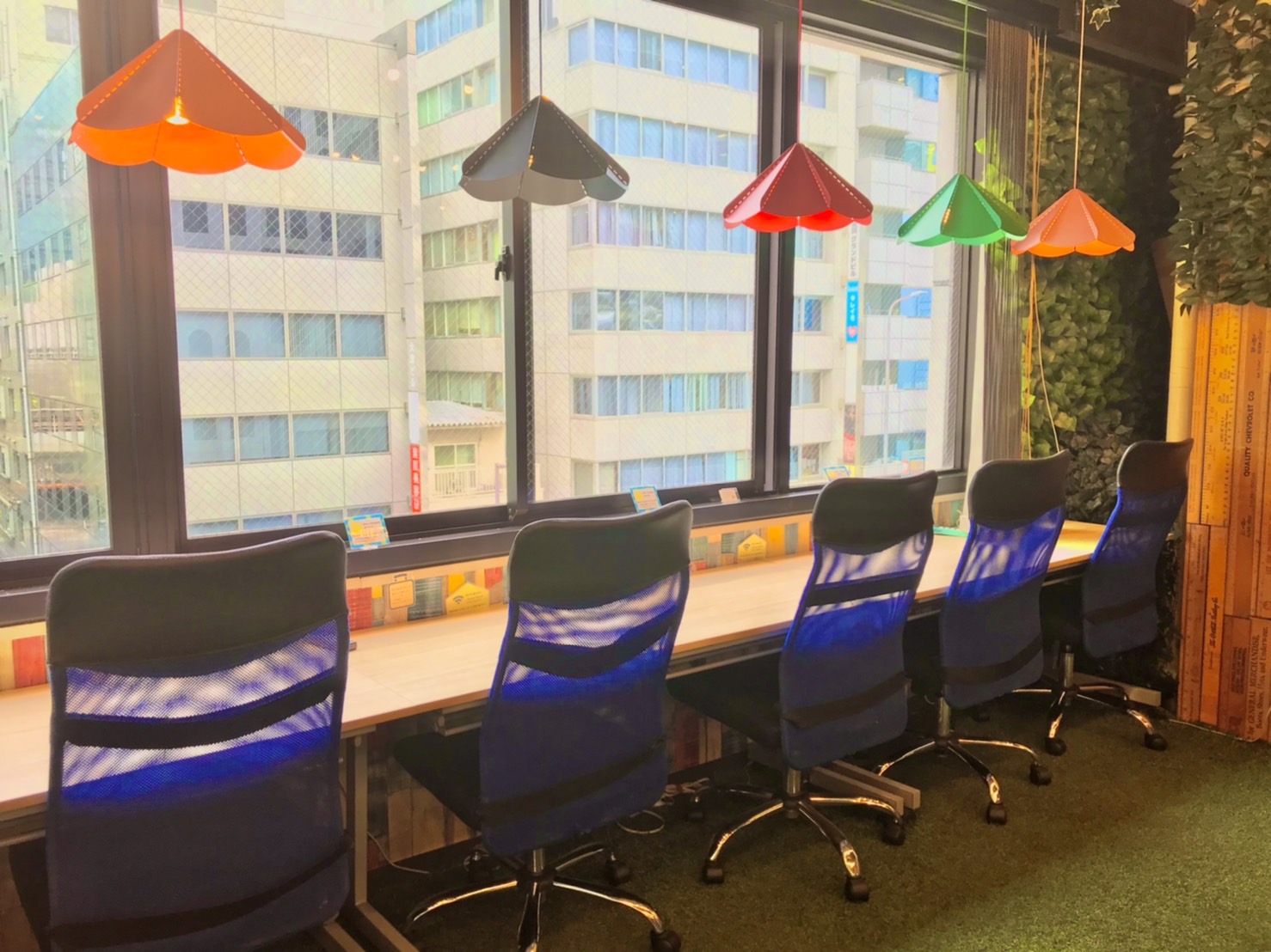 Blue+は足元には芝生🍀、壁にはツタの葉っぱ🌿、上には鳥🦜がいる