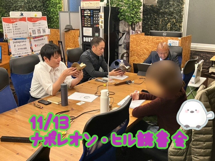 さて、先日11月13日(月)に毎月恒例のイベント「ナポレオン・ヒル読書会」を開催しました!